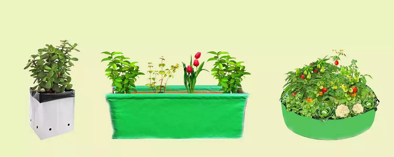Grow bags are a type of gardening container that is made of lightweight, porous fabric. They are designed to hold soil and plants, and are commonly used for growing vegetables, micro greens, herbs, and flowers. Grow bags come in a variety of sizes and shapes, and can be used both indoors and outdoors. Grow bags are easy to store when not in use as they can be folded up. They are also affordable and reusable after wash, which makes them a sustainable choice for gardening.